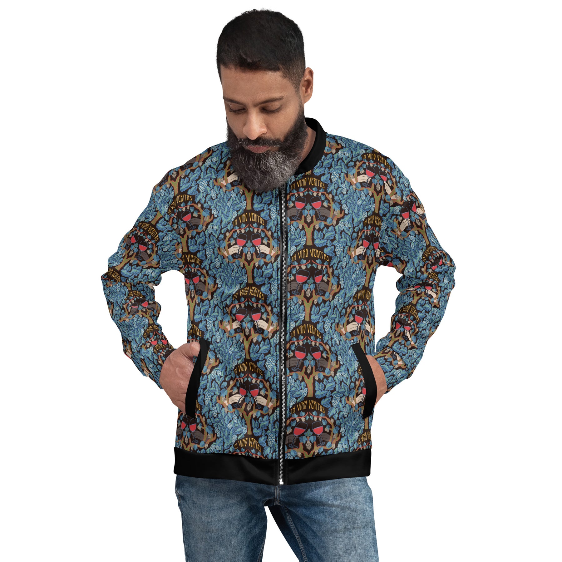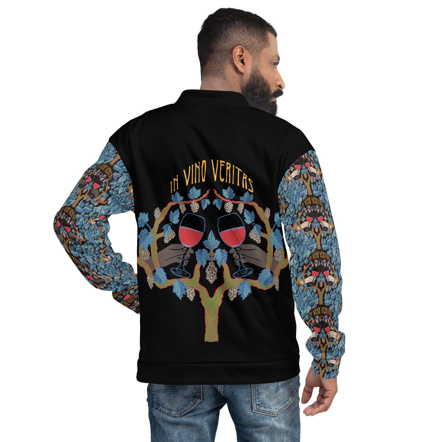 In Vino Veritas Unisex Bomber Jacket – All-Over Grape Vines & Wine Glass Design