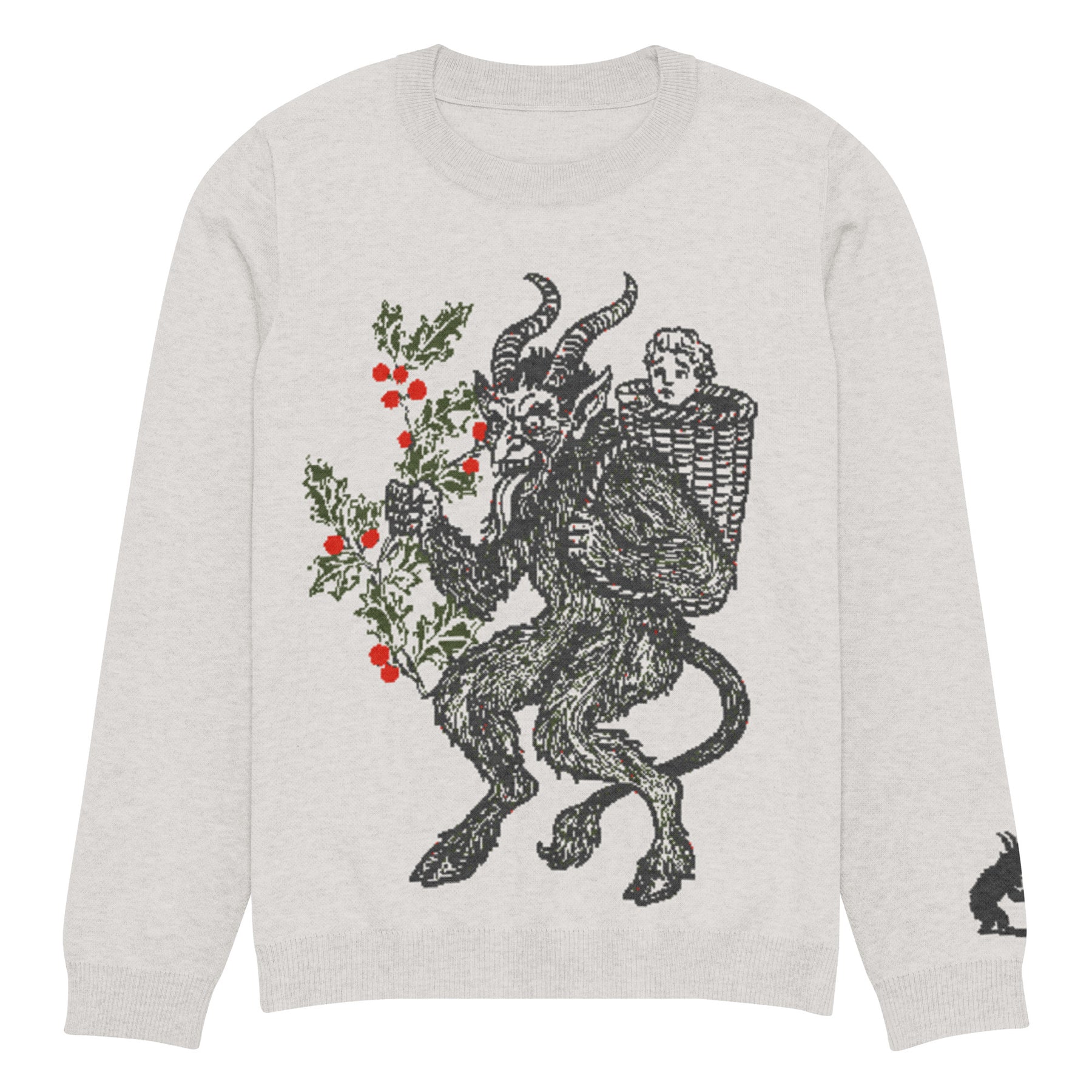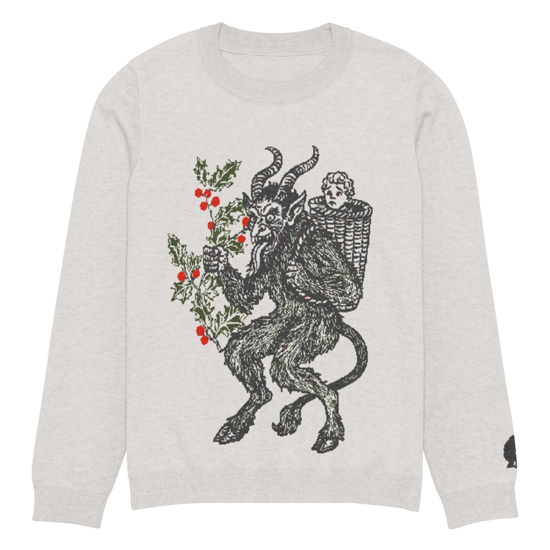 Who says seasonal sweaters have to play it safe? This extra-soft knit crew neck puts Krampus front and center—perfect for anyone who likes their winter style bold, playful, and just a bit wicked. With its clean silhouette (no trim, just pure cozy goodness) and luxurious jacquard texture, this sweater balances comfort with a polished, put-together look.