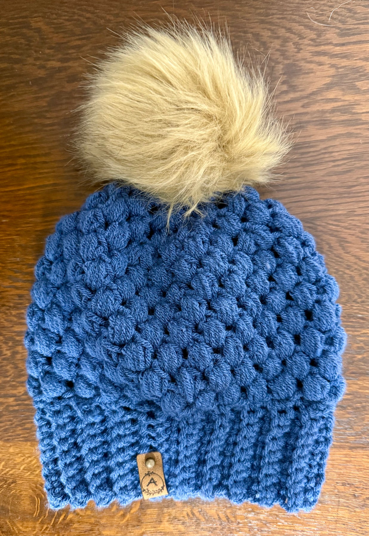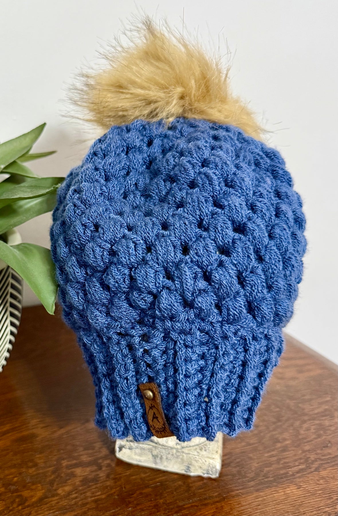 Hand-Crocheted Baby Beanie (12-24 Months) - Country Blue