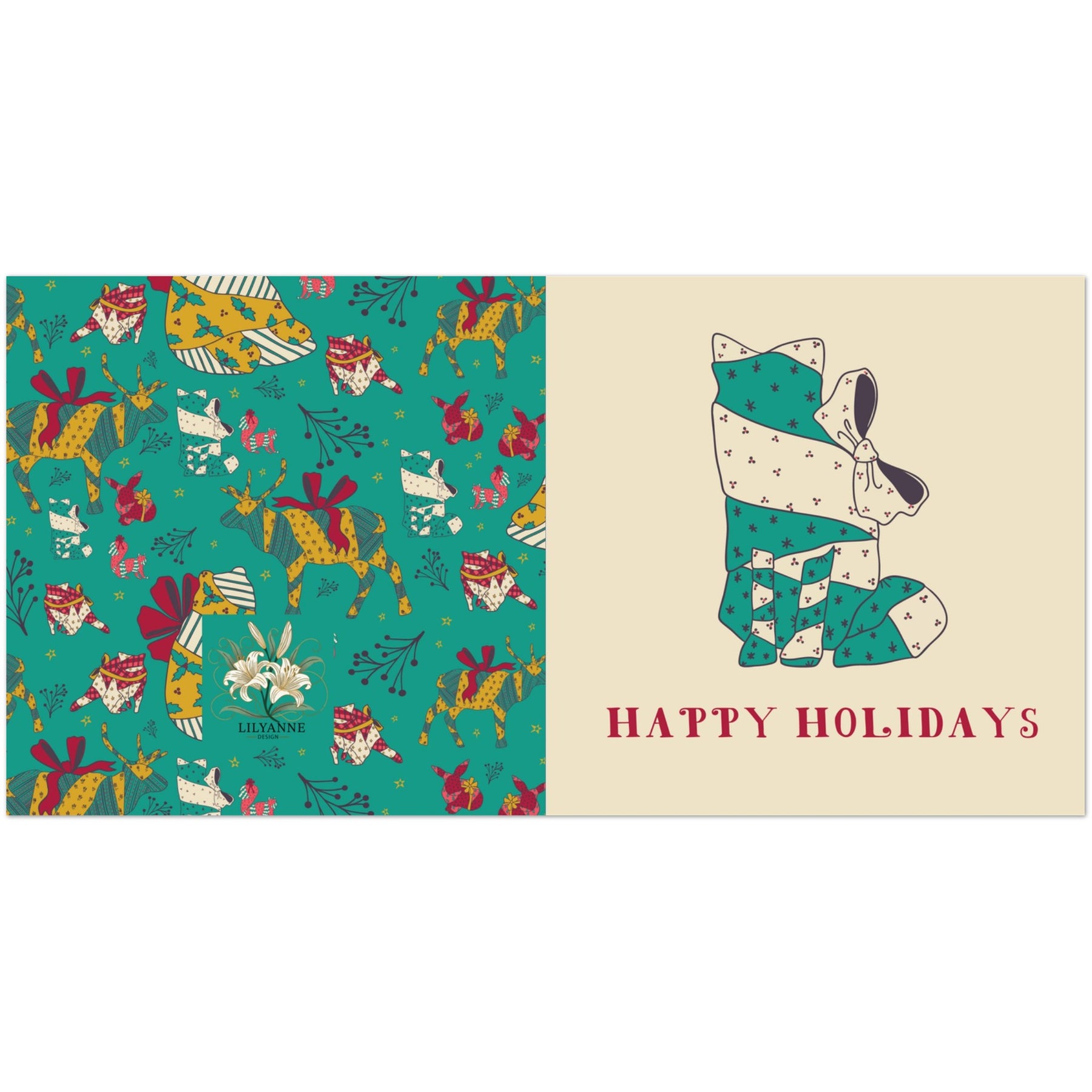 Celebrate the season with this charming Wrapped Up Animals Greeting Card Set by Lilyanne Design. Featuring whimsical woodland creatures wrapped in cozy holiday prints, this cheerful design is perfect for spreading warmth and joy.