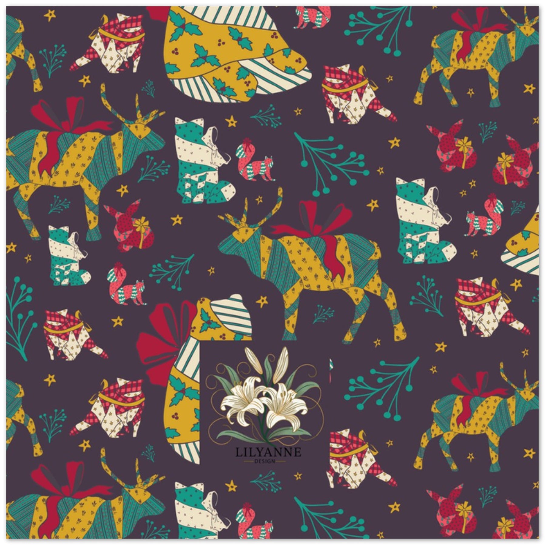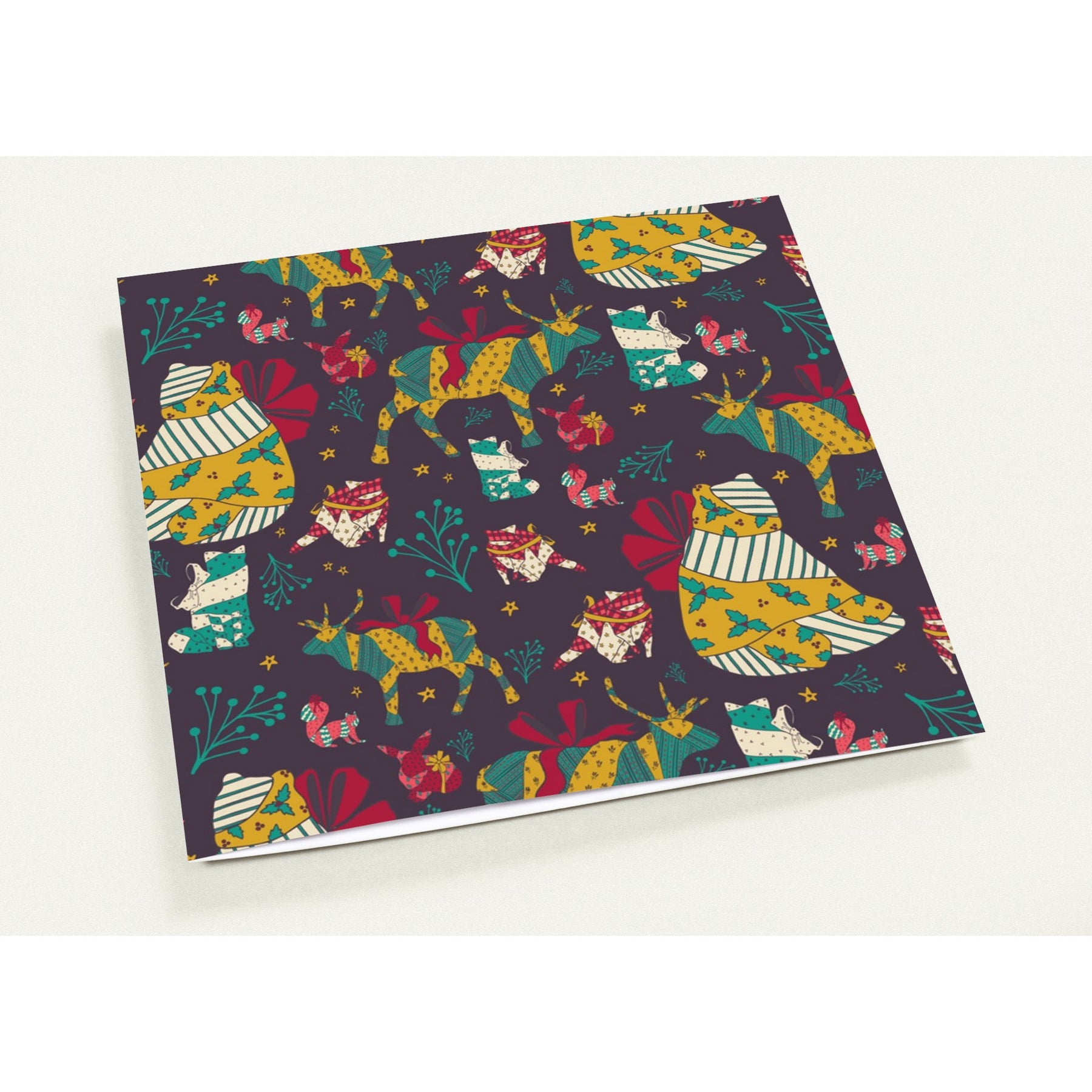 Celebrate the season with this charming Wrapped Up Animals Greeting Card Set by Lilyanne Design. Featuring whimsical woodland creatures wrapped in cozy holiday prints, this cheerful design is perfect for spreading warmth and joy.