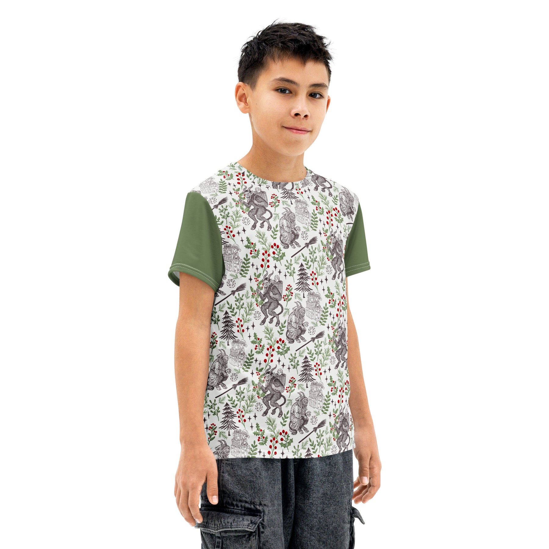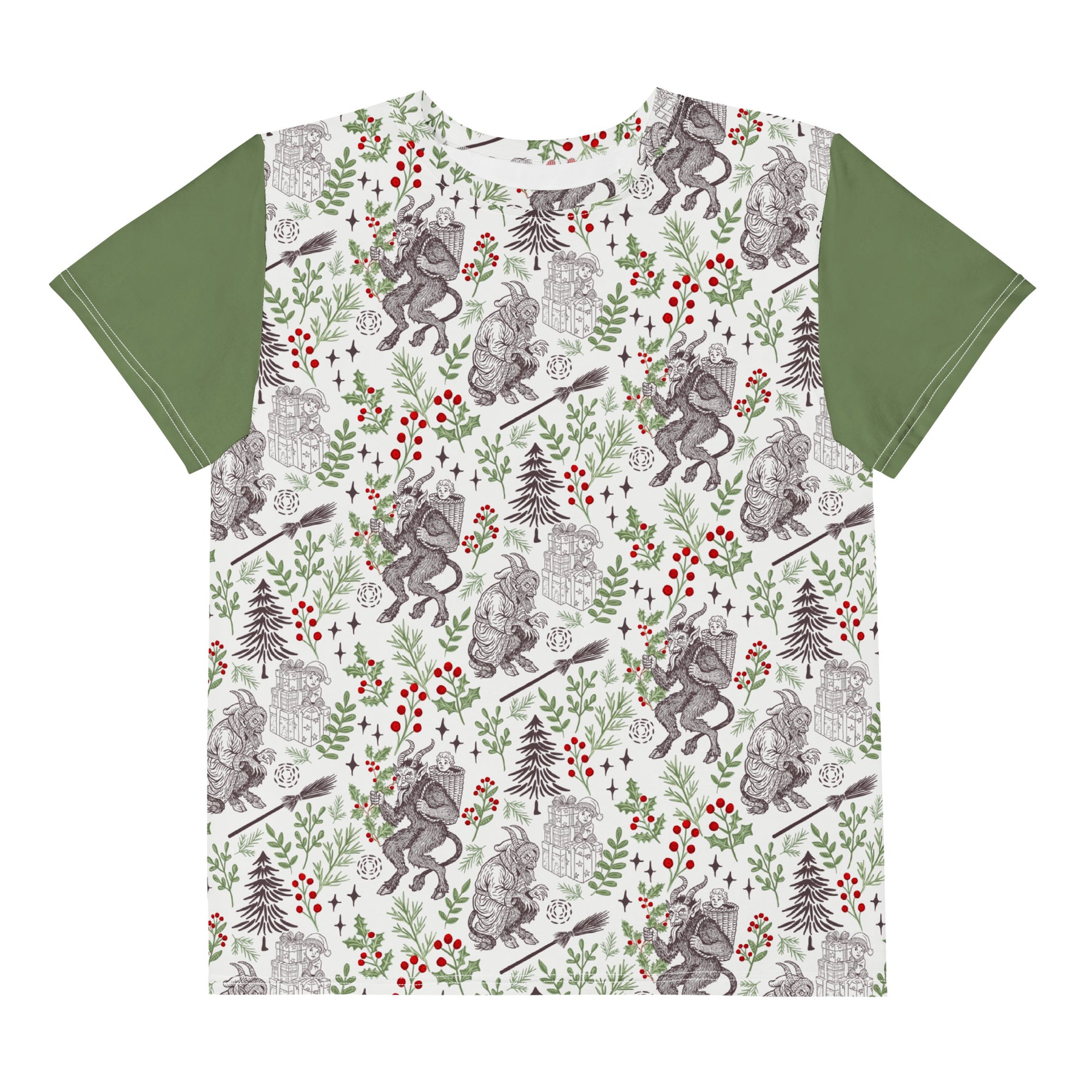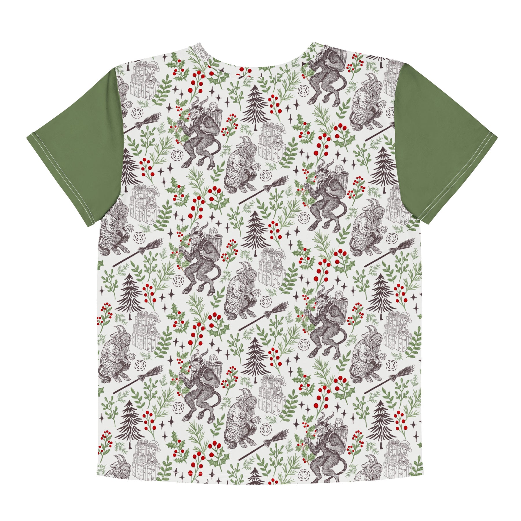 Celebrate the season with a touch of myth and mischief! The Krampusnacht Youth Tee from Lilyanne Design features original Krampus artwork on both front and back, paired with festive green sleeves for a pop of color. Soft, durable, and built for active kids, this tee moves with every jump and play. Made from a breathable cotton blend with a hint of stretch, it keeps its shape and color wash after wash — perfect for winter fun, holiday photos, or everyday adventure.